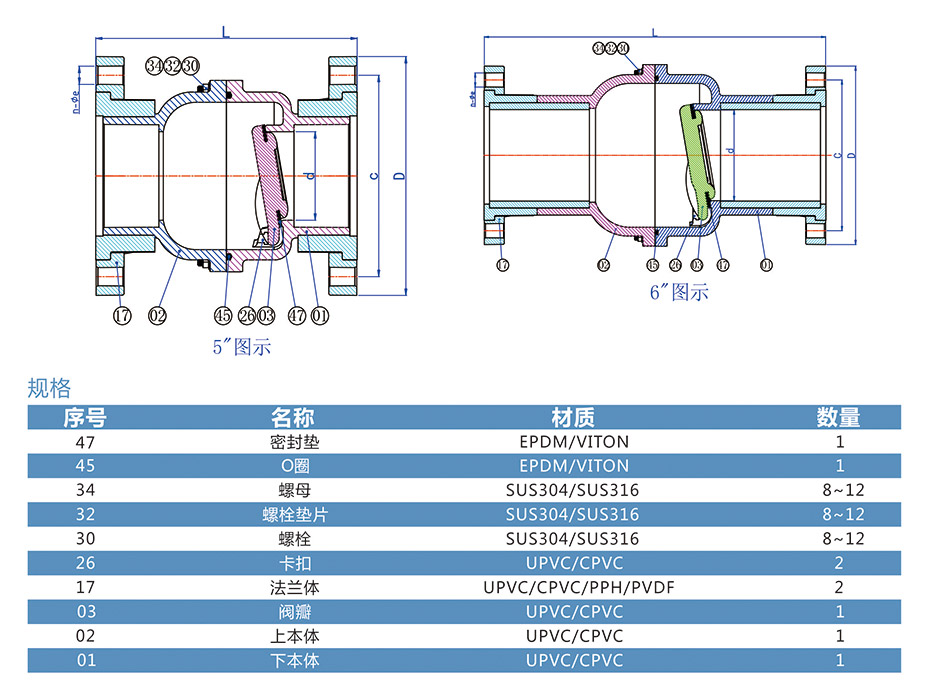 1) 材質:UPVC,CPVC,PPH,PVDF