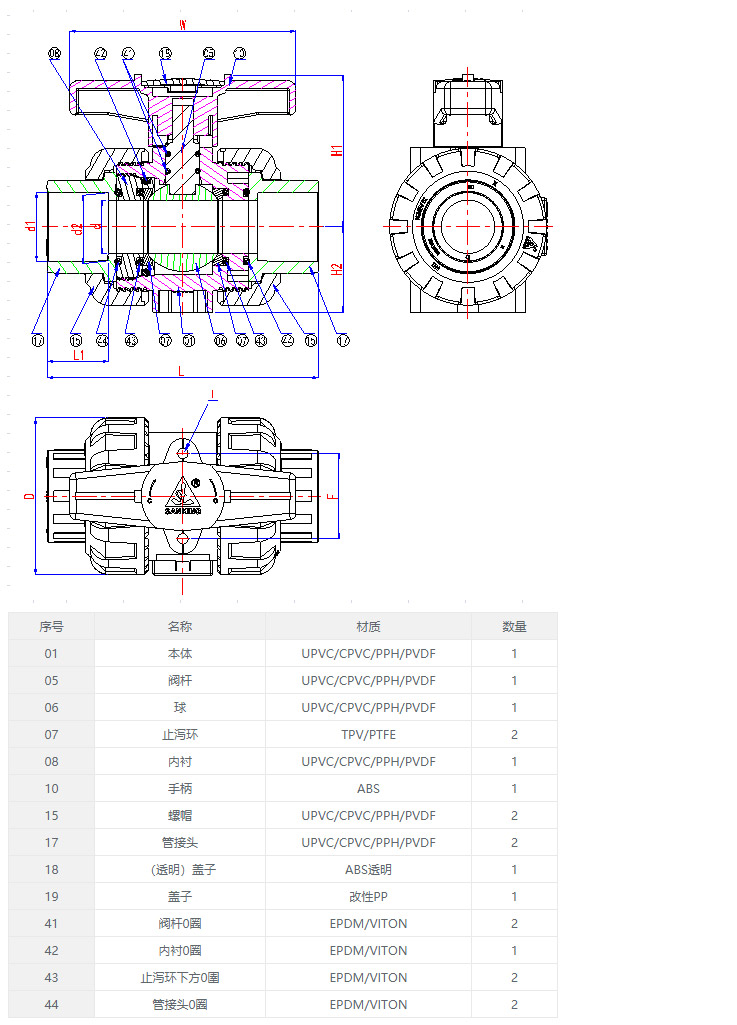 本體顏色:UPVC(深灰色),CPVC(淺灰色),PPH(米黃色)