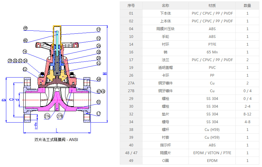 7) 本體顏色: PVC(深灰色), CPVC(淺灰色), PPH(米黃色), Clear PVC(透明), PVDF(象牙色)